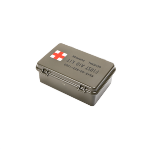 This heavy duty plastic container was made in the USA and features two snap closure latches, first aid embossed lettering and medical symbol graphics on top lid and a rubber gasket inside to make a 100% air tight seal that Ammodors are famous for. Originally used to house medical supplies for our troops. We are the first and only company to offer travel size humidors that are built from repurposed military surplus containers!