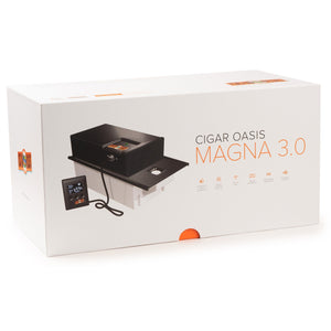 Like all Cigar Oasis humidifiers, the Magna 3.0 comes preset to 70% RH but can always be set to your own preferred humidity level. The sensor constantly monitors the humidity which then activates the fan as needed to produce the cleanest humidity possible. The fan circulates air throughout your humidor in order to reach every cigar equally, keeping your cigars fresh, protected, and preserved for long term aging.